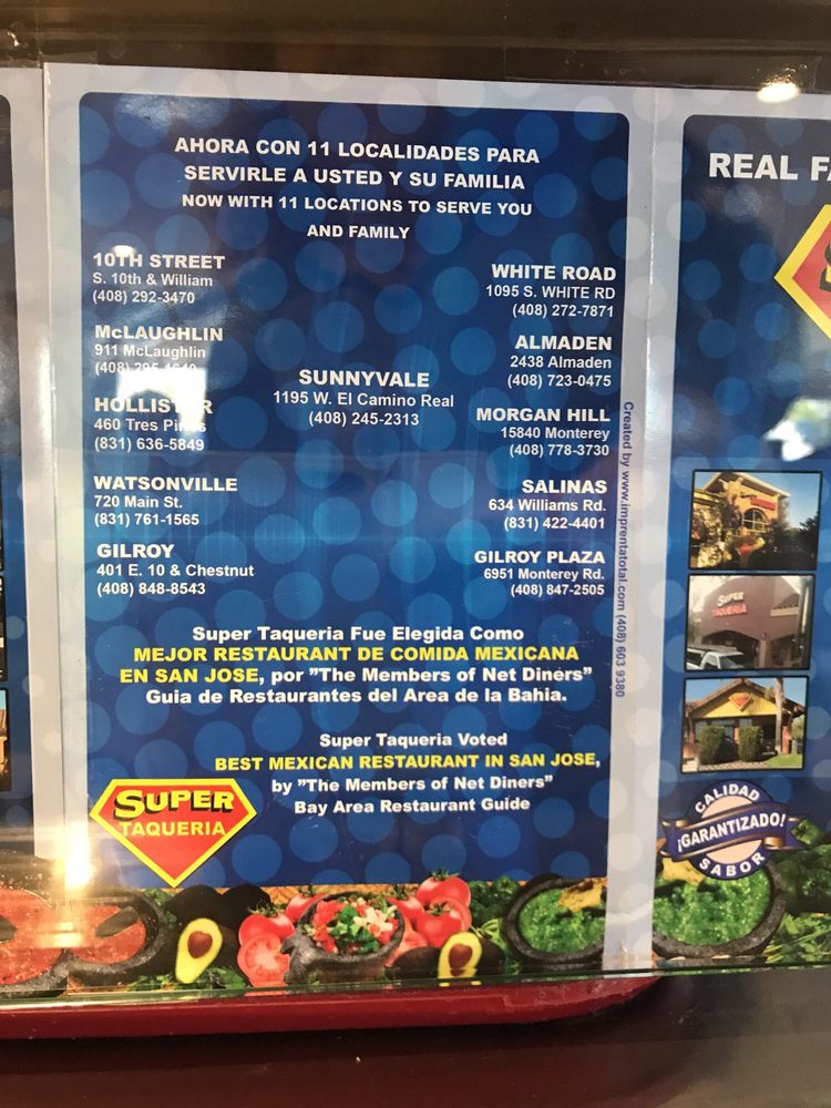 Introducing Super Taqueria, a Mexican restaurant located at 1195 W El Camino Real in Sunnyvale, CA. Known for its delicious and budget-friendly menu, Super Taqueria offers a variety of options such as crispy carne asada and carnitas super tacos, giant burritos, and super nachos. Customers rave about the consistent flavors, generous portions, and speedy service. The salsa bar and agua frescas are crowd favorites, perfect for picky eaters and quick pickups. With a casual ambiance and options for vegan and vegetarian diets, Super Taqueria provides a true taste of California-style Mexican cuisine. Don't miss out on their affordable prices and signature dishes like lengua and flautas. This spot is perfect for a satisfying lunch with friends or family. Whether you're a regular or a first-timer, Super Taqueria promises an authentic Mexican dining experience.